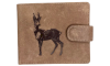 JAGERGLASS Leather wallet with hunting symbols This is a compact but very spacious men's wallet decorated with a wolf on the front. The wallet is made of durable, soft and beautiful natural leather that will satisfy even the most demanding man who appreciates classic style and functionality. Inside the wallet you will find space for credit cards, documents, banknotes and coins. This is a great gift choice, and the wallet comes packaged in a pretty gift box.