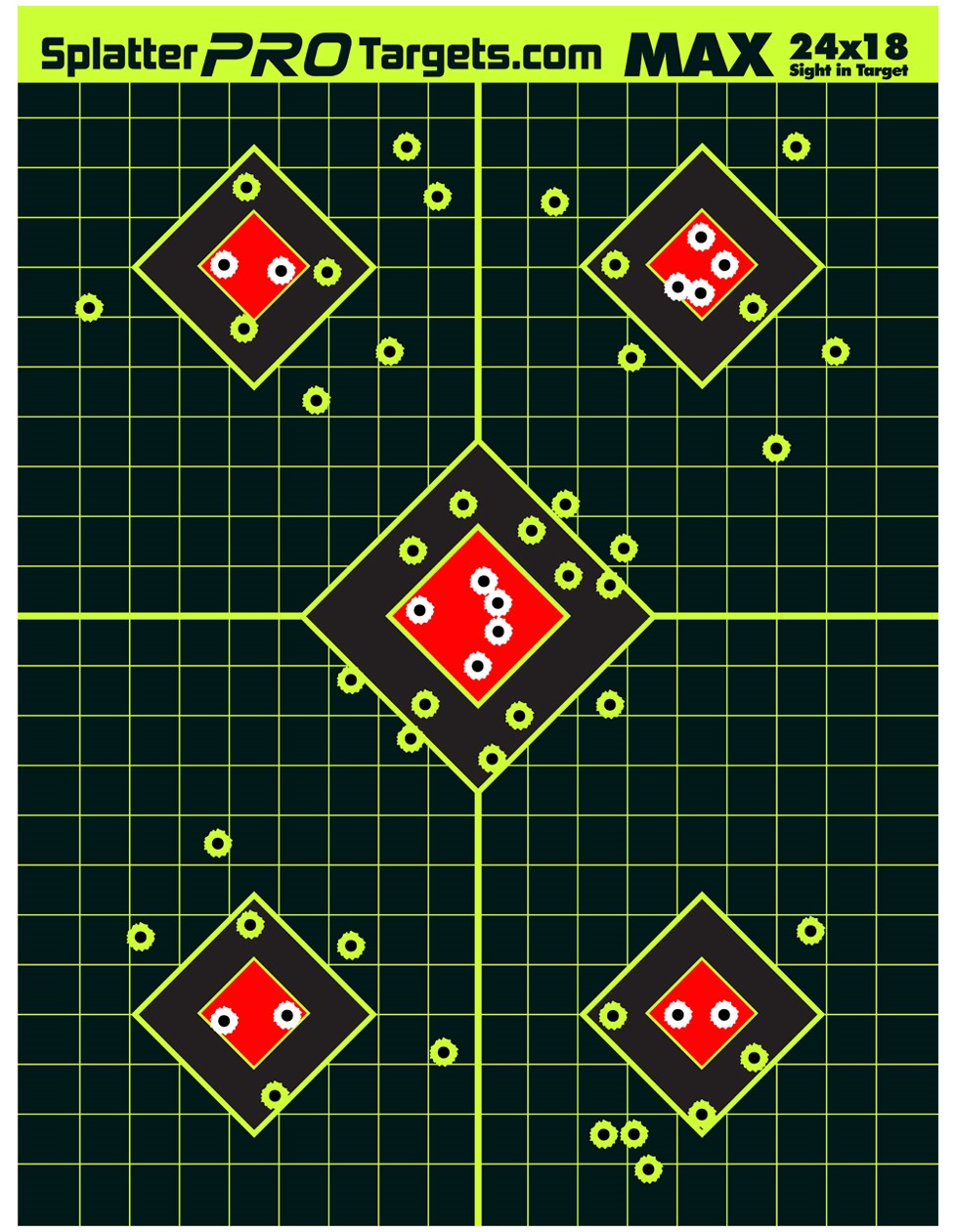 #MX02 SPLATTER PRO TARGETS Paper target, 60x45 cm This is a high-quality paper target designed for shooting practice. The target is large enough to allow for accurate assessment of shot placement, yet compact enough for easy setup and use at various shooting ranges or training locations. Its design is optimized for training with different shooting styles and firearm calibers. It features a special "splatter" technology that makes shot impacts instantly stand out with bright contrast. This effect makes hit locations easily visible even from a greater distance, enhancing the effectiveness and convenience of shooting practice. Made from high-quality, durable paper, this target remains intact even after multiple shots. Price is per unit.