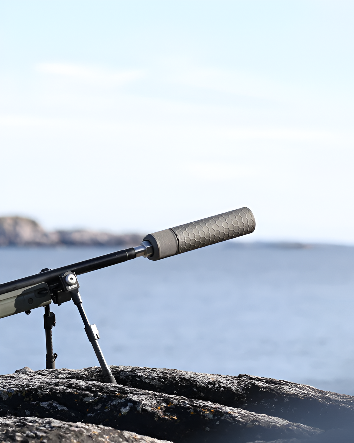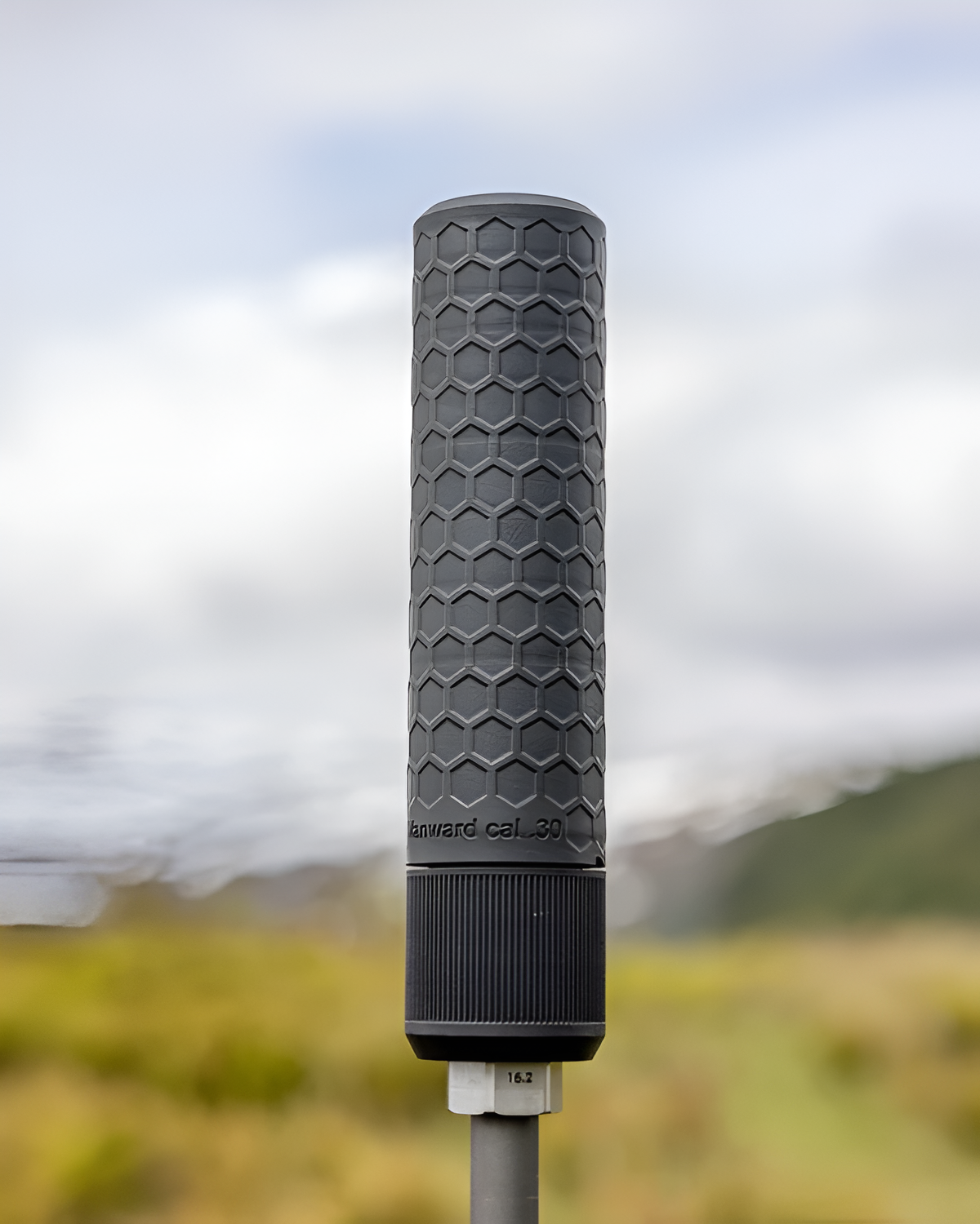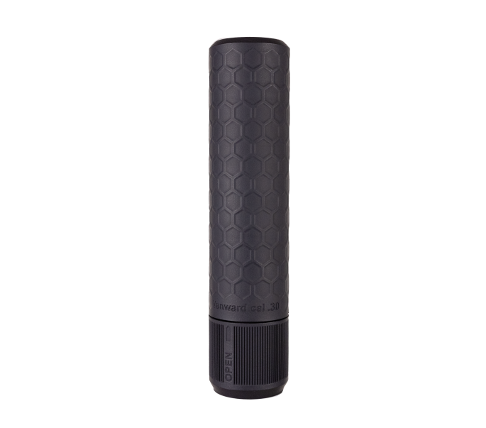 #Q55B30 VANWARD Klusinātājs QD55 kal. 30 Klusinātājs Vanward QD55 projektēts, domājot par medniekiem, kas brīvajā laikā aizraujas arī ar šaušanas sportu. Tas ar 3D printeri ražots no piektās paaudzes titāna. Šis materiāls ir ārkārtīgi izturīgs, viegls un noturīgs gan pret spiedienu, gan koroziju, kas ir visizplatītākais klusinātāju nodiluma cēlonis. Klusinātāja ārējam dizainam ir 3D sešstūra raksts, kas ne tikai to uzlabo vizuāli, bet arī veicina stingrāku konstrukciju. Tas padara klusinātāju vēl drošāku, spēcīgāku un izturīgāku. Raksts veicina efektīvāku arī virsmas dzesēšanu. Titāns ir viens no korozijizturīgākajiem metāliem uz zemes. Tas izturīgs pret ūdeni, sāls šķīdumiem, pulvera atliekām. Pētījumi rāda, ka šaujampulvera sadegšanas produkti nepielīp titānam tā kā alumīnijam vai tēraudam. Testi ir pierādījuši, ka klusinātājs joprojām ir lietojams bez tīrīšanas, pat pēc 8000 izšautiem .308Win. kalibra šāvienu. Turklāt titāna kušanas temperatūra pārsniedz 1600 grādus pēc Celsija, tāpēc pat pie ātras šaušanas nav jāuztraucas par klusinātāja precīzu darbību, pat tad, ja klusinātājs ir ļoti stipri sakarsis. Šo klusinātāju iespējams lietot tikai komplektā ar Vanward ProBrake stobra bremzi, ko var iegadāties atsevišķi! Stobra bremze vislabāk noderēs šaušanas sacensībās, kad ir nepieciešams slāpēt šāviena atsitienu un stobra palēcienu šāviena brīdī. Savukārt, dodoties medībās, bremzei var uzlikt virsū un nofiksēt klusinātaju, tā papildus iegūstot arī skaņas slāpēšanu. Bremzes un klusinātāja apvienojums nodrošina izcilu skaņas, atsitiena un stobra palēciena slāpēšanu. Ražotājs norāda, ka, uzliekot klusinātāju uz bremzes, lodes trāpījuma vieta nemainīsies.