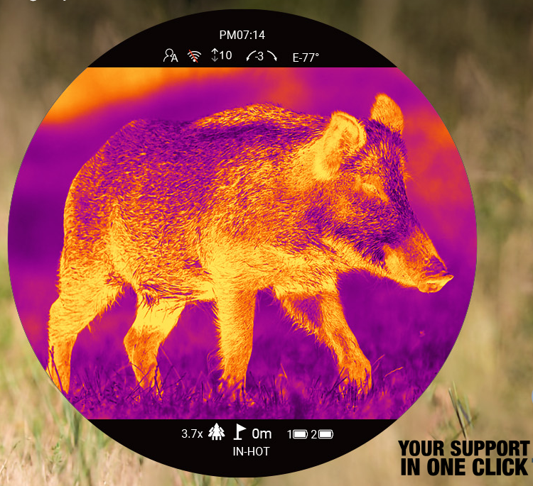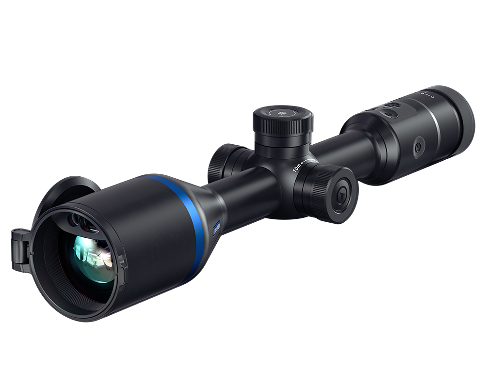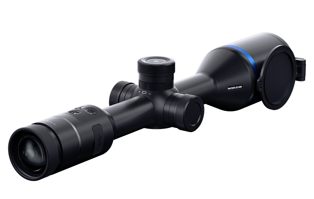 #PAE6-50/LRF   PARD Termālais tēmēklis Pantera eX 640   Tēmēklim ir 640x512 pikseļu termālais sensors ar ≤14 milikelvinu jutību, kas vēl labāk nekā iepriekš spēj uztvert minimālas temperatūras atšķirības. Tas attēlu padara vēl vairāk kontrastainu un detalizētu. Lai padarītu šo ierīci sajūtu ziņā līdzīgu dienas tēmēklim, tai ir apaļš 2560x2560 pikseļu ekrāns.   50 milimetu platajā priekšējā lēca ir iebūvēts lāzera tālmērs, kas spēj noteikt attālumu līdz 1000 metru distancei. Kad attālums nomērīts, to tēmēklis izmanto iebūvētajā ballistiskajā kalkulatorā, lai noteiktu nepieciešamo tēmēšanas korekciju konkrētajā distancē. Funkcija noder gan tālāku, gan ļoti tuvu šāvienu veikšanai.   Attēlam ir seši dažādi krāsu režīmi un trīs vides režīmi. Lietotājs var piemeklēt sev piemērotāko tīkliņa formu no sešiem dažādiem variantiem un četram krāsām.   Ārējo lēcu sargā ērts, magnētisks aizsargvāciņš, ko var aizvērt un atvērt pavisam klusi. Tā kā vāciņš ir piestiprināts pie korpusa, to nevar arī pazaudēt. Attēla fokusu var regulēt ar tornīti tēmēkļa sānos. To ir viegli aizsniegt jebkurā situācijā. Augšējais regulācijas tornītis izveidots tā, lai tas taktili atgādinātu dienas tēmēkļa dizainu. Citu iestatījumu regulācijas pogas ir uztaisītas ne vien lielākas, bet arī pirksta gala formā, lai tās varētu instinktīvi sataustīt gan ar, gan bez cimdiem.   Korpuss izgatavots no viegla, bet izturīga alumīnija sakausējuma. Tas ir ilgmūžīgs un izturīgs pret skrāpējumiem un cita veida nodilumu. Lai nodrošinātu ilgu darbības laiku, tēmēklī ir divas baterijas - viena iebūvēta (21700), bet otra ir izņemama (18650). Tās spēj darbināt tēmēkli līdz pat astoņām stundām.   Lai saglabātu atmiņām labākos medību momentus, ar tēmēkli var filmēt un fotografēt. Filmēšanas funkciju var ieslēgt manuāli, bet to var aktivizēt arī ar šāviena atsitienu. Sajūtot to, tēmeklis ierakstīs un saglabās videoklipu, kur būs redzams laiks pirms šāviena, šāviena brīdis un īss brīdis pēc tam.