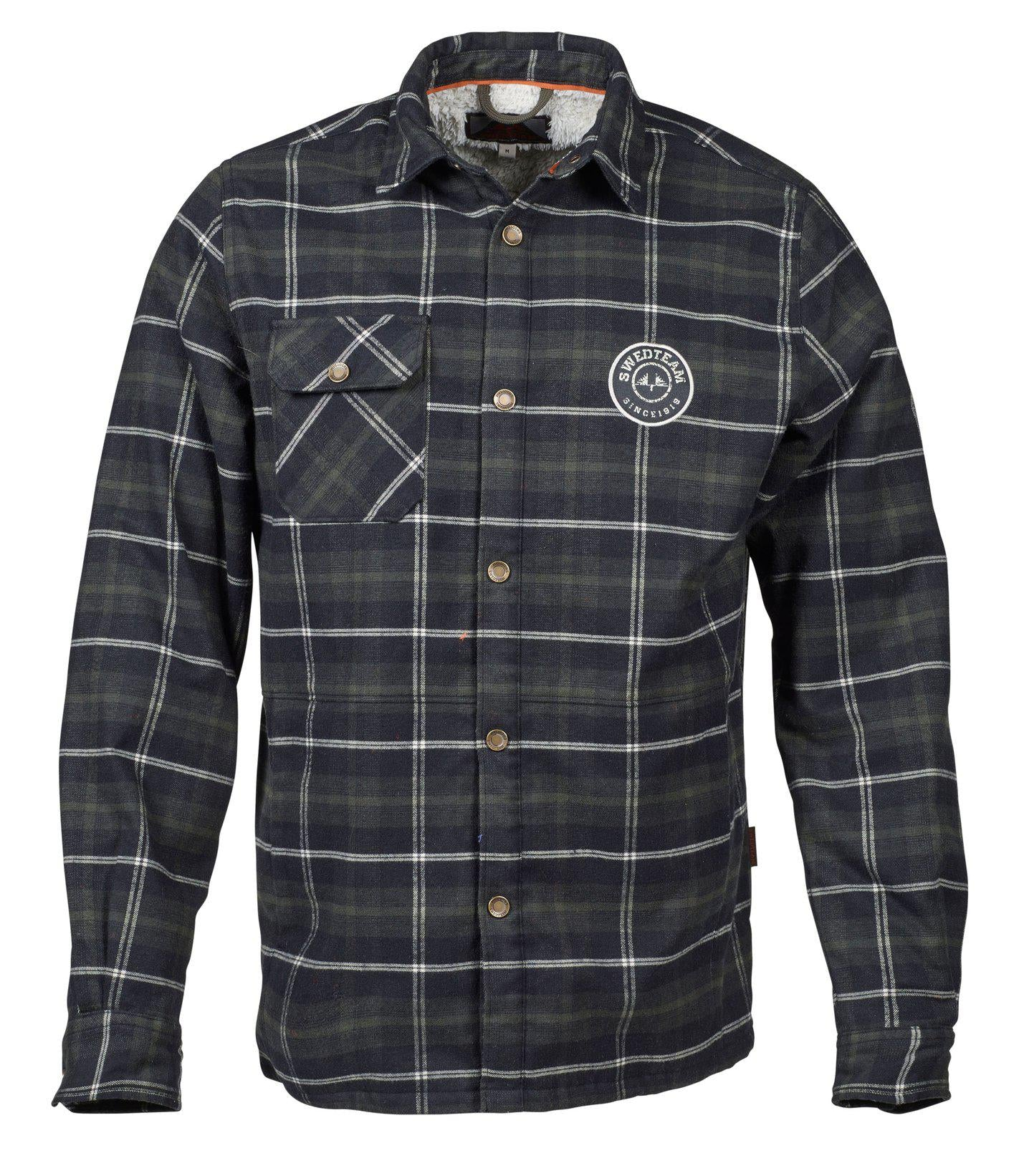 #100488 SWEDTEAM Shirt Ultra Pile A warm and comfortable shirt to wear as a second layer on cooler days during hunting or in everyday life. It is made of polyester and features a soft inner lining that helps retain warmth. There is a small chest pocket on the front, and the collar is turned down. The shirt is fastened with snap buttons, which are also featured on the cuffs, allowing it to be worn with sleeves rolled up or down.