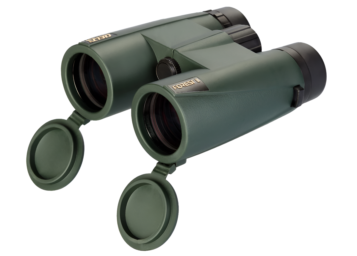 #DO-1304 DELTA Binoculars FOREST II 8x42 The Forest II 8x42 binoculars are lightweight and compact, making them an excellent choice for active hunters. They feature roof prisms with BaK4 glass. The lenses have FMC anti-reflective coatings, providing accurate color reproduction and reducing chromatic aberration. The resulting image is clear and sharp. The binoculars offer 8x magnification and a wide 8.5° field of view. The durable, waterproof body is nitrogen-filled to prevent internal fogging. The focus wheel is easy to reach and operate, and the diopter adjustment is located on the right eyepiece. To make them suitable for eyeglass wearers, the binoculars are equipped with adjustable eyecups.