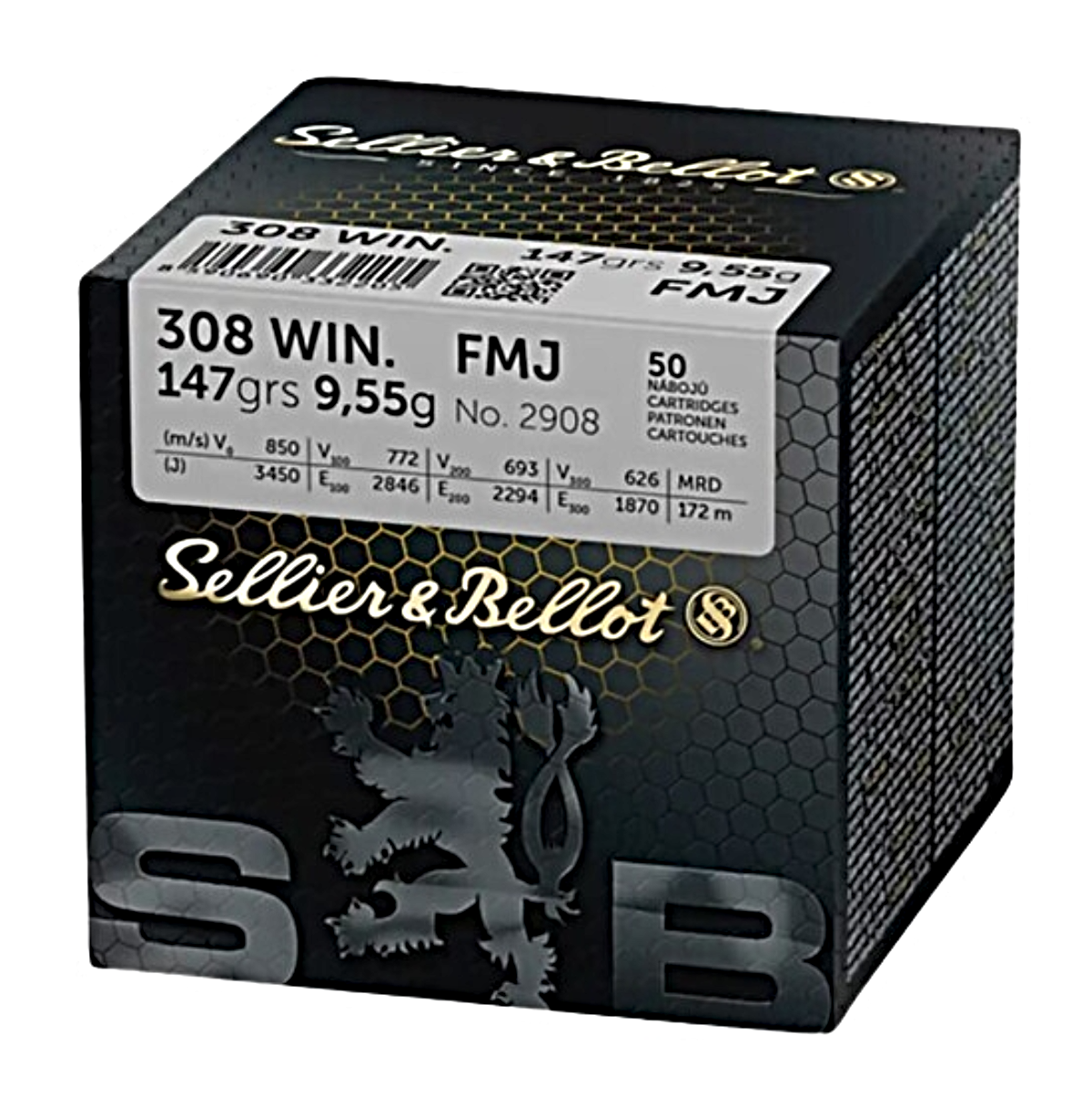 Cartridges Sellier & Bellot .308Win. FMJ 9,55g Ammunition manufactured in the Czech Republic, loaded with a full metal jacket (FMJ) bullet featuring a standard lead core. This ammunition is intended for small game hunting as well as shooting practice and training. Hunters who have used this ammunition note that it is well suited for small animals from which a trophy is planned to be prepared afterward, such as a pelt or taxidermy mount. The bullet does not cause significant damage to the meat or the hide.