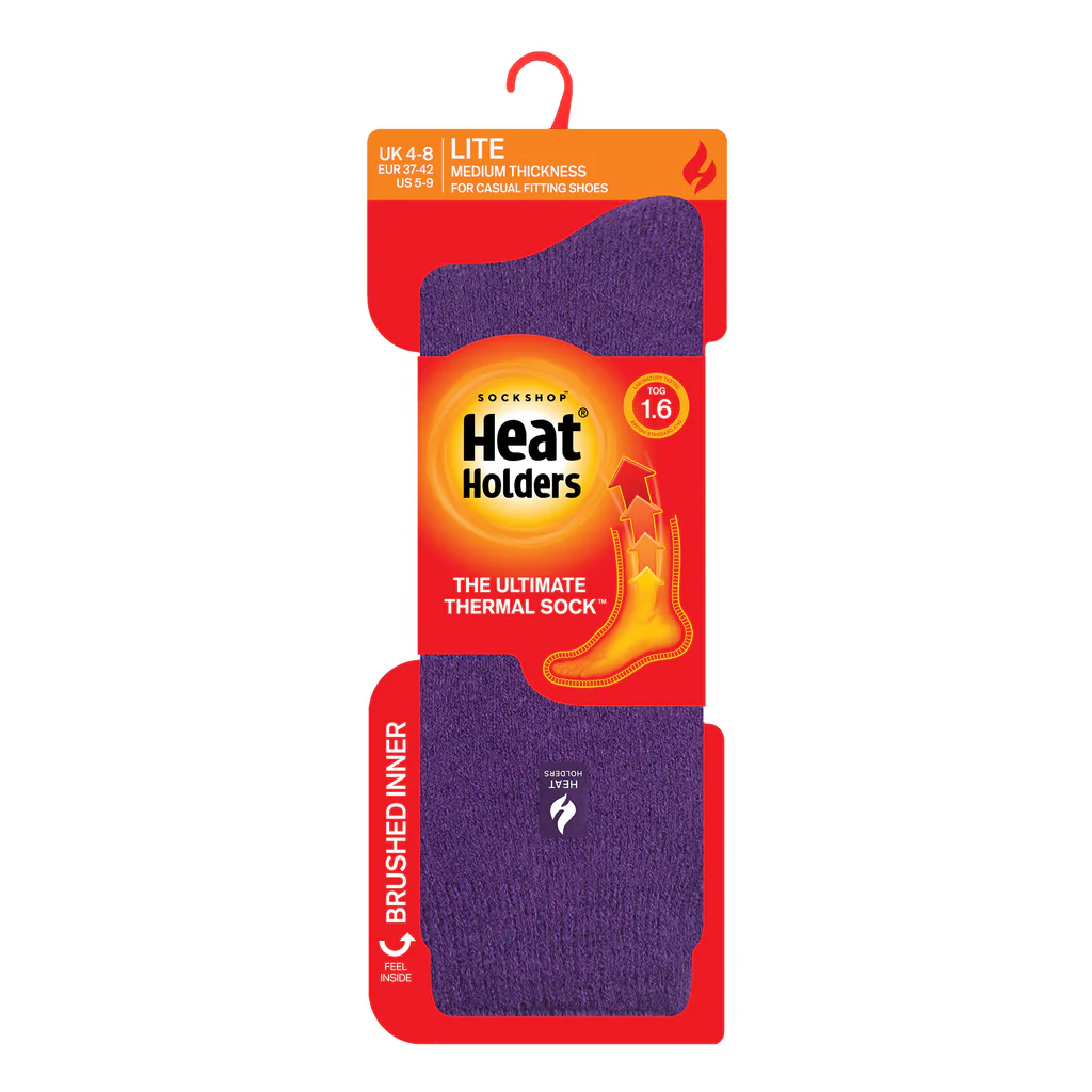 #LTLHH551PUR HEAT HOLDERS Women's socks LITE PLAIN DAHLIA These Ladies Lite Thermal Socks in Purple boast an impressive 1.6 TOG rating, making them four times warmer than a basic cotton sock. They give you the ideal balance between thickness and warmth, allowing you to enjoy long-lasting comfort in your casual shoes all winter long. Soon after we launched our famous Original socks, we set out to create the warmest thermal sock for more casual-fitting footwear. Following twelve months of testing, development and research, the Heat Holders Lite thermal socks were born. Heat Holders thermal socks are sure to keep your feet warm on even the coldest days. We believe that whatever you’re doing, inside or out, you should feel comfortable and content so you can enjoy life to the full.