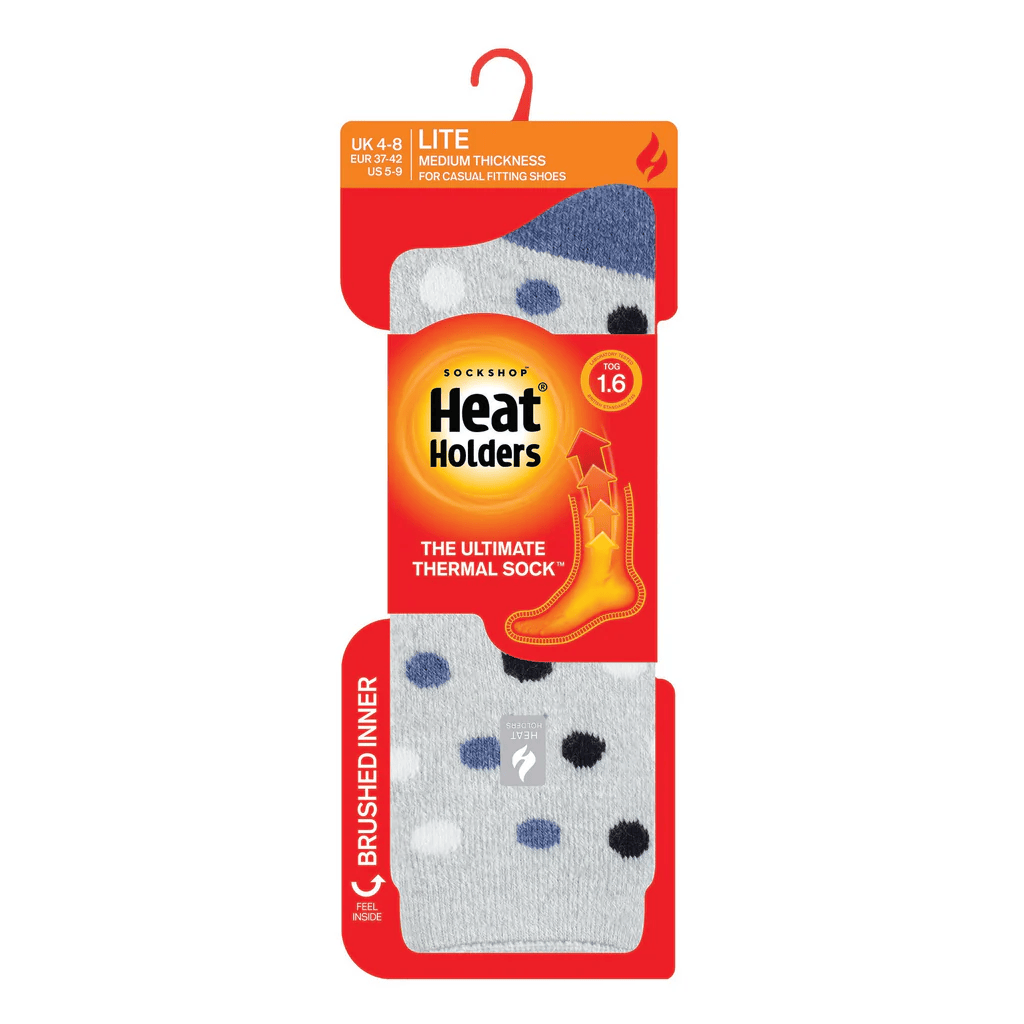 #LTLHH604G1DNM HEAT HOLDERS Sieviešu zeķes LITE DOTS MALAGA Šīm zeķēm TOG (Thermal Overall Grade jeb termālās noturības rādītājs) ir 1,6. Tas nozīmē, ka šīs zeķes ir četras reizes siltākas, nekā parastas kokvilnas zeķes, kā arī īpaši mīkstas un ērtas. Tās sniedz ideālu balansu starp biezumu un siltumnoturību. Lieliski derēs nēsāšanai ikdienas apavos ziemā. Tās ražotas no progresīvas termālās dzijas. Iekšpusē pavedieni veidoti vidēji garās cilpās, kas virspusē spurojas, tā izveidojot mīkstu un biezu iekšējo kārtu. Šī pūkainā odere veido vietu, kur pie ādas uzkrāties siltajam gaisam.