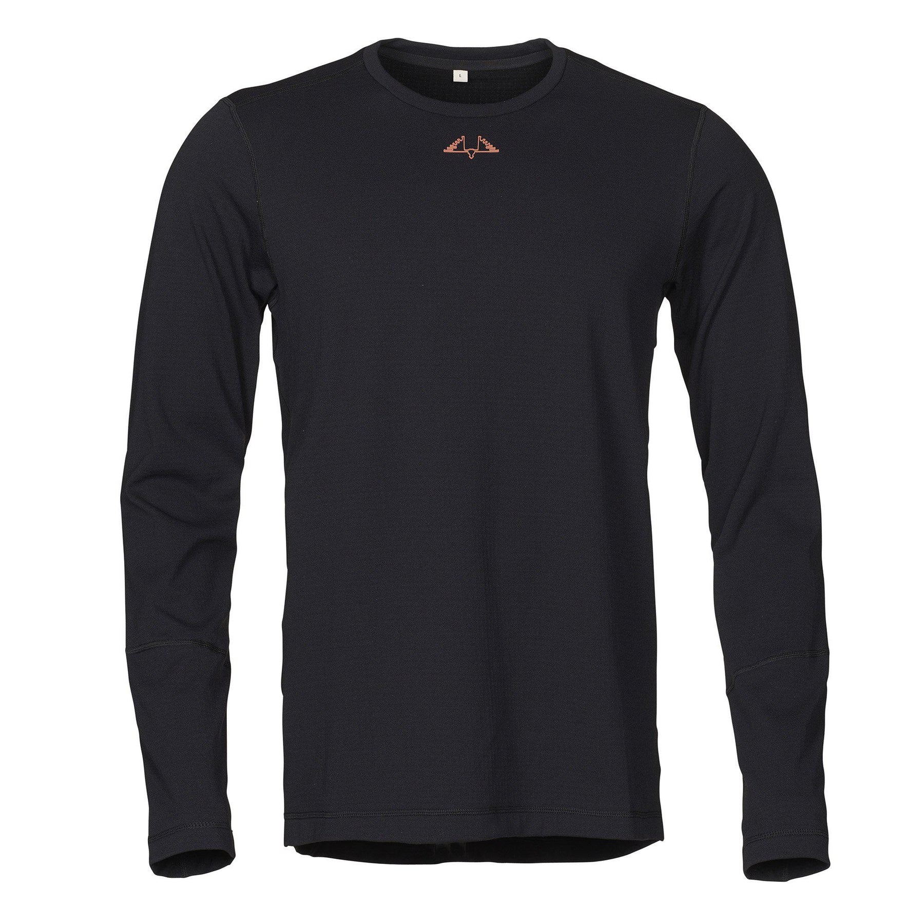 #100545 SWEDTEAM Apakšveļas krekls Ridge M Šis garais apakšveļas krekls ir paredzēts kā apakšējais slānis, tas ir, kreklu jāvelk tieši uz ādas. Tas ir nedaudz pagarināts, lai, aktīvi kustoties, pieliecoties un pietupjoties, mugura un vēders vienmēr paliktu apsegts. Tas ir elastīgs un pieguļošs augumam. Tā kā tas ir ražots no ātri žūstoša auduma, uz ķermeņa neuzkrāsies sviedri un izdodies saglabāt siltumu dažādos laikapstākļos, kad nepieciešams aktīvi kustēties.