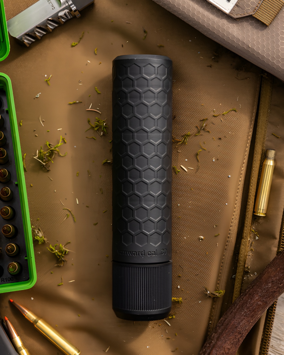 #Q55B30 VANWARD Klusinātājs QD55 kal. 30 Klusinātājs Vanward QD55 projektēts, domājot par medniekiem, kas brīvajā laikā aizraujas arī ar šaušanas sportu. Tas ar 3D printeri ražots no piektās paaudzes titāna. Šis materiāls ir ārkārtīgi izturīgs, viegls un noturīgs gan pret spiedienu, gan koroziju, kas ir visizplatītākais klusinātāju nodiluma cēlonis. Klusinātāja ārējam dizainam ir 3D sešstūra raksts, kas ne tikai to uzlabo vizuāli, bet arī veicina stingrāku konstrukciju. Tas padara klusinātāju vēl drošāku, spēcīgāku un izturīgāku. Raksts veicina efektīvāku arī virsmas dzesēšanu. Titāns ir viens no korozijizturīgākajiem metāliem uz zemes. Tas izturīgs pret ūdeni, sāls šķīdumiem, pulvera atliekām. Pētījumi rāda, ka šaujampulvera sadegšanas produkti nepielīp titānam tā kā alumīnijam vai tēraudam. Testi ir pierādījuši, ka klusinātājs joprojām ir lietojams bez tīrīšanas, pat pēc 8000 izšautiem .308Win. kalibra šāvienu. Turklāt titāna kušanas temperatūra pārsniedz 1600 grādus pēc Celsija, tāpēc pat pie ātras šaušanas nav jāuztraucas par klusinātāja precīzu darbību, pat tad, ja klusinātājs ir ļoti stipri sakarsis. Šo klusinātāju iespējams lietot tikai komplektā ar Vanward ProBrake stobra bremzi, ko var iegadāties atsevišķi! Stobra bremze vislabāk noderēs šaušanas sacensībās, kad ir nepieciešams slāpēt šāviena atsitienu un stobra palēcienu šāviena brīdī. Savukārt, dodoties medībās, bremzei var uzlikt virsū un nofiksēt klusinātaju, tā papildus iegūstot arī skaņas slāpēšanu. Bremzes un klusinātāja apvienojums nodrošina izcilu skaņas, atsitiena un stobra palēciena slāpēšanu. Ražotājs norāda, ka, uzliekot klusinātāju uz bremzes, lodes trāpījuma vieta nemainīsies.