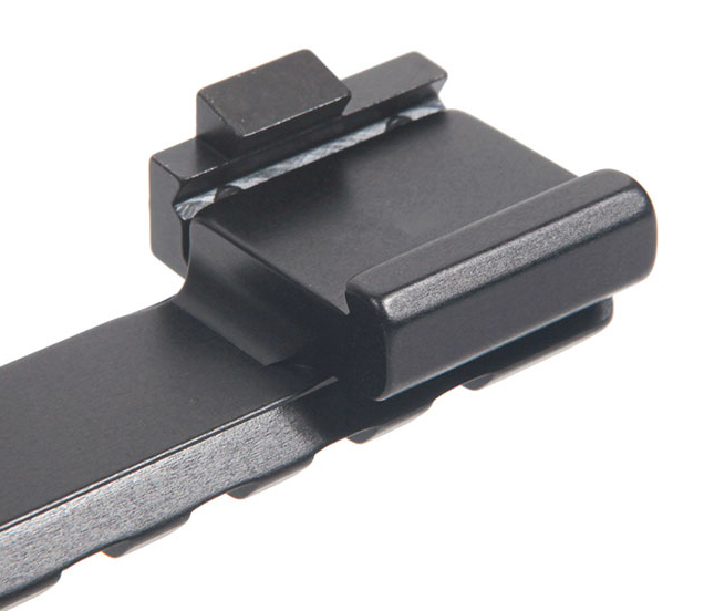 Sliede ir saderīga gan ar Picatinny, gan ar Weaver optisko tēmēkļu stiprinājumiem.