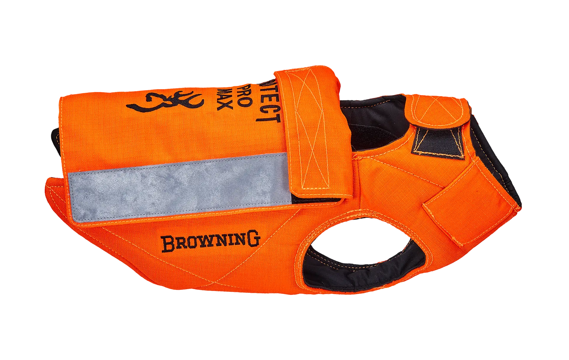 #1305501O70 BROWNING Aizsargveste sunim PROTECT PRO MAX, 70cm Šī aizsargveste nodrošina optimālu aizsardzību Jūsu sunim medību laikā vai pārvietojoties meža apvidos. Veste ir veidota tā, lai pasargātu dzīvnieku no zariem, dzīvnieku uzbrukumiem un citiem iespējamajiem traumējošiem faktoriem, vienlaikus saglabājot augstu kustību brīvību. Protect Pro MAX ir tik pat viegls un efektīvs pret dūrieniem un plēsumiem kā Protect Pro modelis, taču šis vēl papildus spēj suni pasargāt no spēcīga trieciena, piemēram, mežacūkas uzbrukuma laikā. Pateicoties šīm triecienabsorbējošām īpašībām, vestē suņa ķermenis būs pilnīgi pasargāts. Ražojot vesti, izmantoti desmit auduma slāņi - viens slānis ar mīkstu audumu komfortam, divi termoregulējoši slāņi, kas uzlabo ventilāciju, četri Dyneema® slāņi, kas pasargā no dūrieniem un kodieniem, divi biezu putu slāņi, kas absorbē triecienus, kā arī vēl viens slānis ar Cordura 1100 materiālu, kas neļauj vesti uzplēst uz asiem zariem. Vestei ir īpaši izturīgas šuves un YKK tipa rāvējslēdzēji, kas padara to piemērotu lielai slodzei. Krūšu, kakla daļā ir iestrādāta vieta, kur izvērt cauri GPS izsekošanas kaklasiksnu. Kakla atvere ir ergonomiska, tā netraucē sunim brīvi kustēties. Sānos ir iestrādāta atstarojoša josla, kas padara dzīvnieku labāk pamanāmu luktura gaismā vai arī var suni pasargāt no sadursmes ar automašīnu. Aizdares daļa ir regulējama, taču ieteicams pašu vesti izvēlēties sunim atbilstošā izmērā, vadoties pēc krūškurvja apkārtmēra. Zemāk ir redzams video, kā pareizi sunim noteikt vajadzīgo izmēru.
