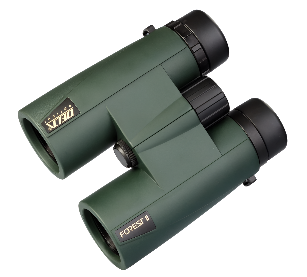 #DO-1304 DELTA Binoculars FOREST II 8x42 The Forest II 8x42 binoculars are lightweight and compact, making them an excellent choice for active hunters. They feature roof prisms with BaK4 glass. The lenses have FMC anti-reflective coatings, providing accurate color reproduction and reducing chromatic aberration. The resulting image is clear and sharp. The binoculars offer 8x magnification and a wide 8.5° field of view. The durable, waterproof body is nitrogen-filled to prevent internal fogging. The focus wheel is easy to reach and operate, and the diopter adjustment is located on the right eyepiece. To make them suitable for eyeglass wearers, the binoculars are equipped with adjustable eyecups.